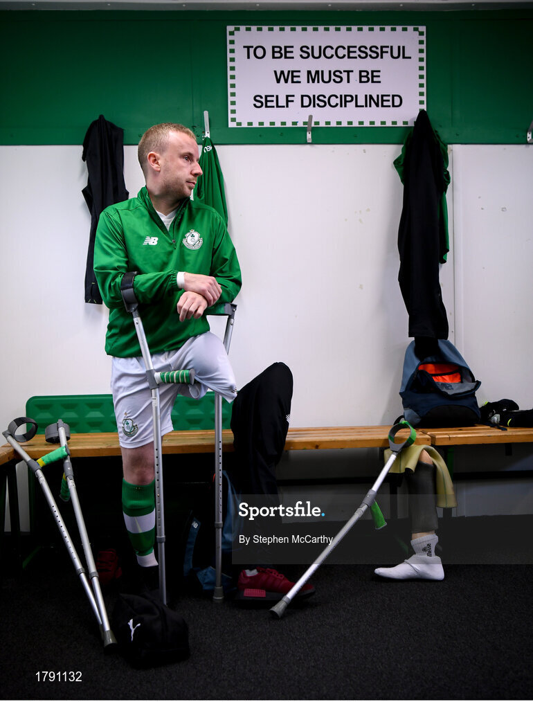 7 September 2019; Sean Furlong of Shamrock Rovers prior to the Megazyme Amputee Football League Cup Finals at Carlisle Grounds in Bray, Co Wicklow. Photo by Stephen McCarthy/Sportsfile