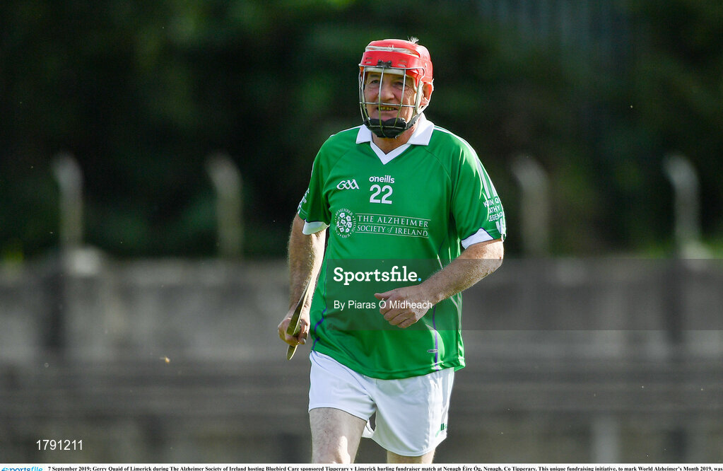7 September 2019; Gerry Quaid of Limerick during The Alzheimer Society of Ireland hosting Bluebird Care sponsored Tipperary v Limerick hurling fundraiser match at Nenagh Éire Óg, Nenagh, Co Tipperary. This unique fundraising initiative, to mark World Alzheimer’s Month 2019, was the brainchild of two leading Munster dementia advocates, Kevin Quaid and Kathy Ryan, who both have a dementia diagnosis. All the money raised will go towards providing community services and advocacy supports in the Munster area and beyond. Photo by Piaras Ó Mídheach/Sportsfile