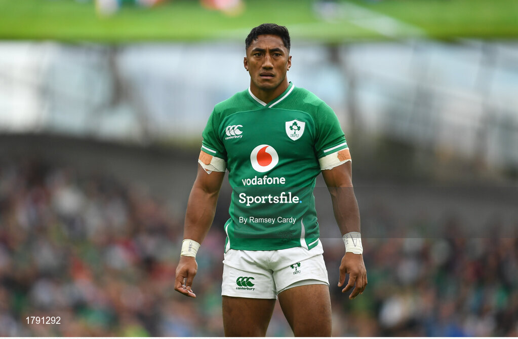 7 September 2019; Bundee Aki of Ireland during the Guinness Summer Series match between Ireland and Wales at the Aviva Stadium in Dublin. Photo by Ramsey Cardy/Sportsfile