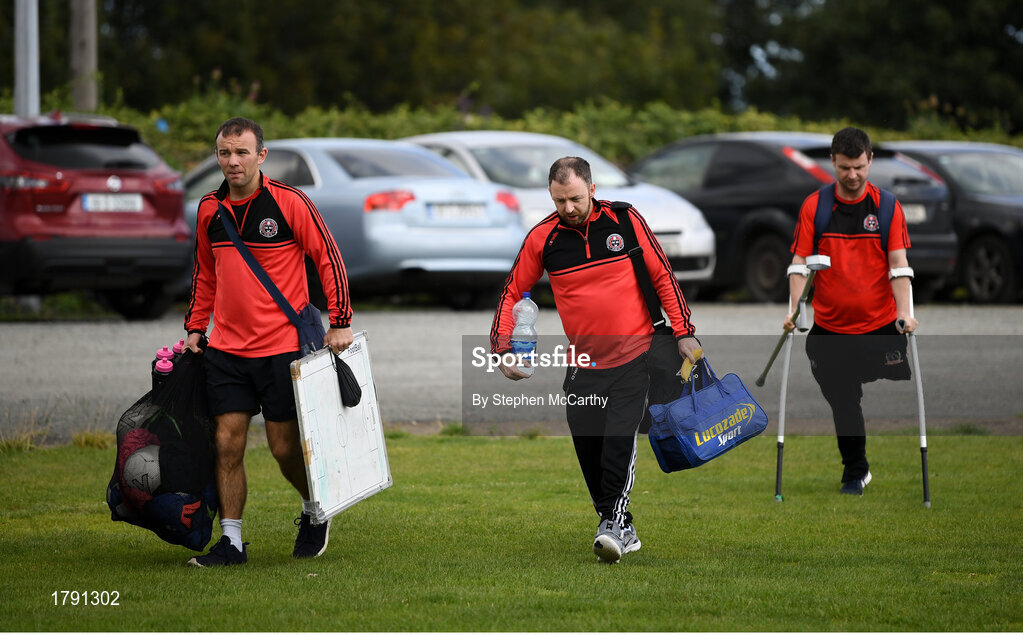 7 September 2019; Bohemians manager Ronan Croke and players arrive ahead of the Megazyme Amputee Football League Cup Finals at Carlisle Grounds in Bray, Co Wicklow. Photo by Stephen McCarthy/Sportsfile