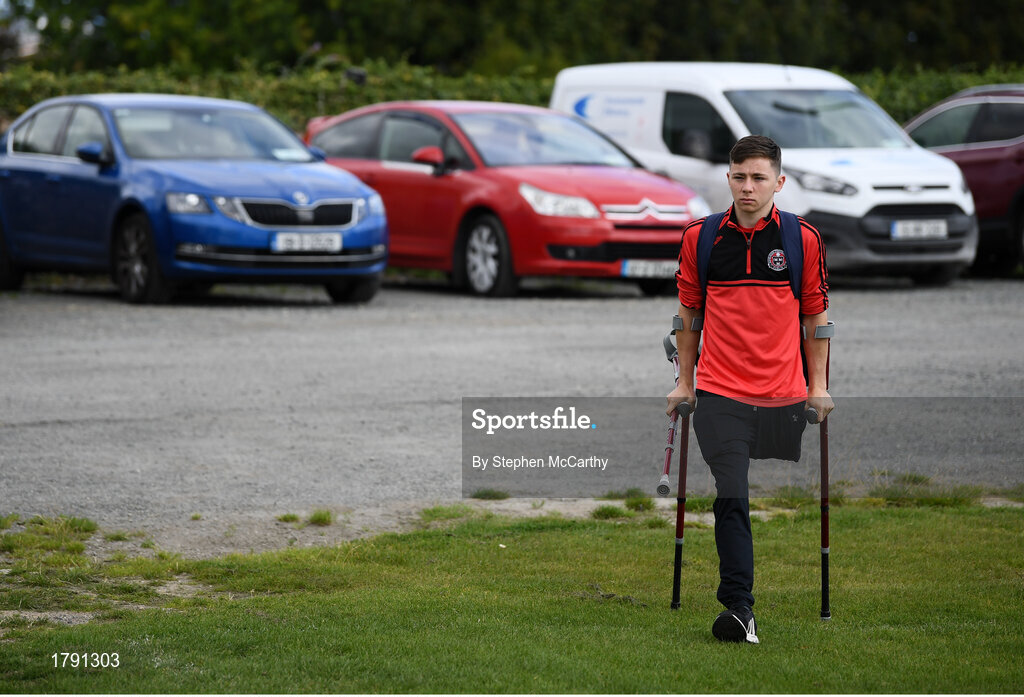 7 September 2019; Neil Hoey of Bohemians arrives ahead of the Megazyme Amputee Football League Cup Finals at Carlisle Grounds in Bray, Co Wicklow. Photo by Stephen McCarthy/Sportsfile