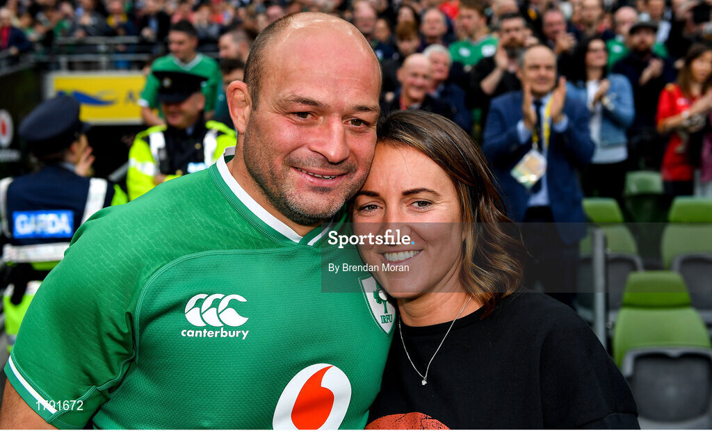 7 September 2019; Ireland captain Rory Best with his wife Jodie after the Guinness Summer Series match between Ireland and Wales at Aviva Stadium in Dublin. Photo by Brendan Moran/Sportsfile