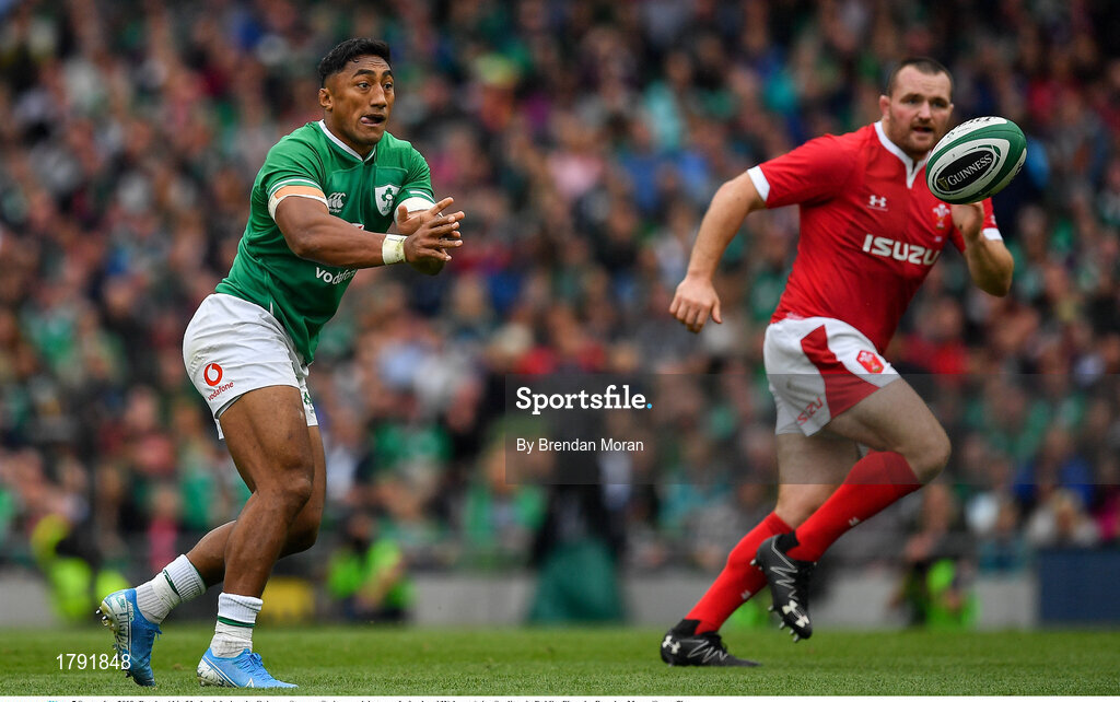 7 September 2019; Bundee Aki of Ireland during the Guinness Summer Series match between Ireland and Wales at Aviva Stadium in Dublin. Photo by Brendan Moran/Sportsfile