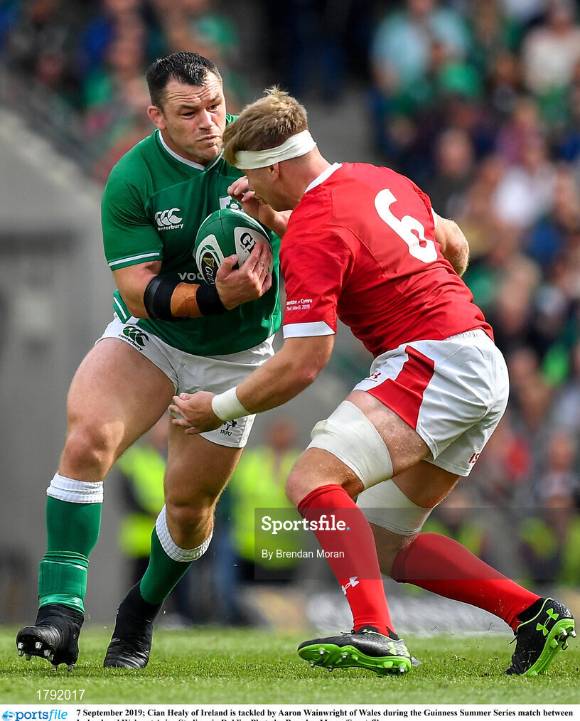7 September 2019; Cian Healy of Ireland is tackled by Aaron Wainwright of Wales during the Guinness Summer Series match between Ireland and Wales at Aviva Stadium in Dublin. Photo by Brendan Moran/Sportsfile