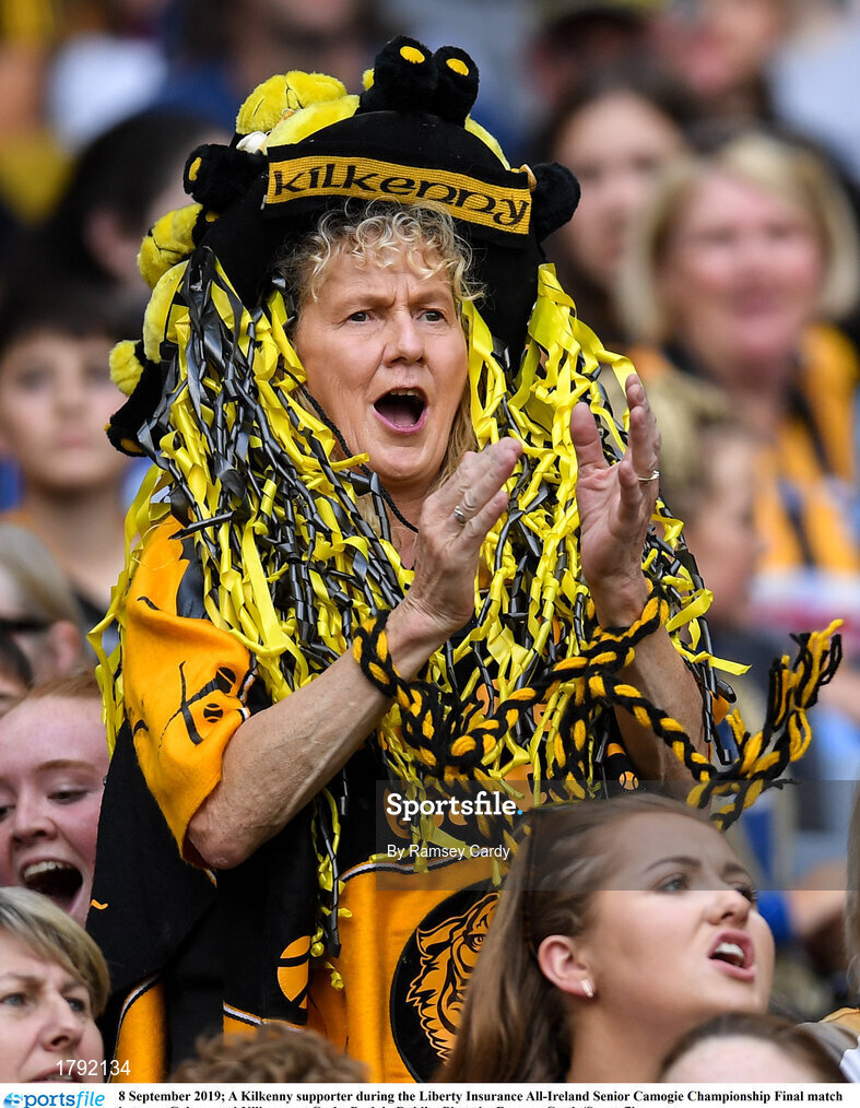 8 September 2019; A Kilkenny supporter during the Liberty Insurance All-Ireland Senior Camogie Championship Final match between Galway and Kilkenny at Croke Park in Dublin. Photo by Ramsey Cardy/Sportsfile