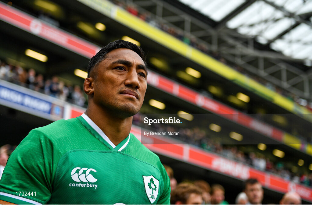 7 September 2019; Bundee Aki of Ireland walks out prior to during the Guinness Summer Series match between Ireland and Wales at Aviva Stadium in Dublin. Photo by Brendan Moran/Sportsfile