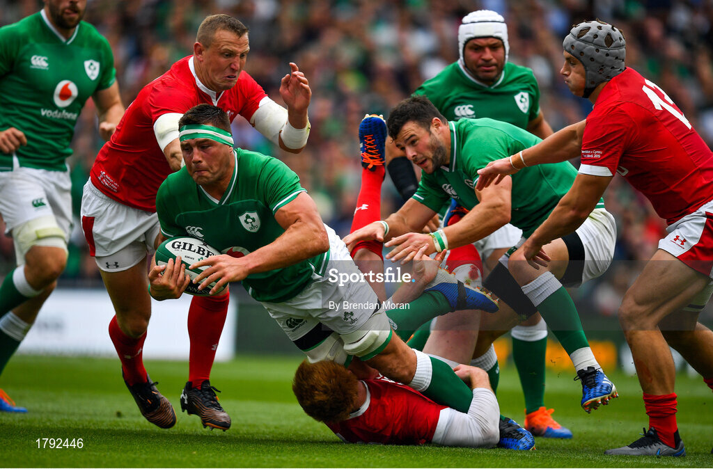 7 September 2019; CJ Stander of Ireland is tackled by Rhys Patchell of Wales during the Guinness Summer Series match between Ireland and Wales at Aviva Stadium in Dublin. Photo by Brendan Moran/Sportsfile