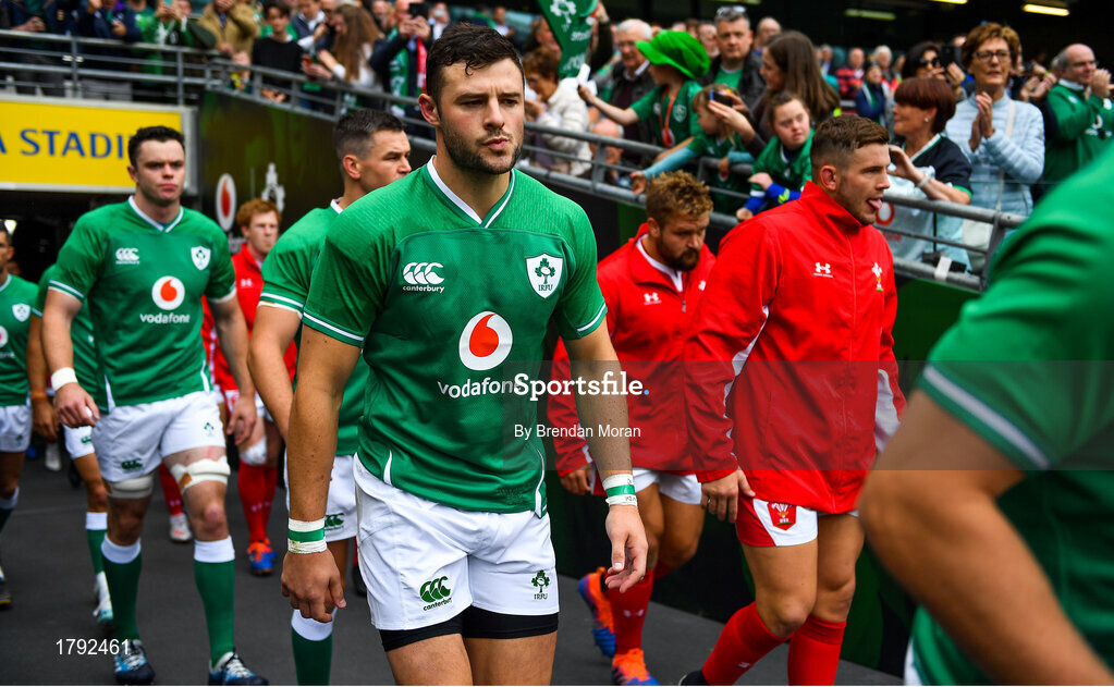7 September 2019; Robbie Henshaw of Ireland walks out prior to during the Guinness Summer Series match between Ireland and Wales at Aviva Stadium in Dublin. Photo by Brendan Moran/Sportsfile