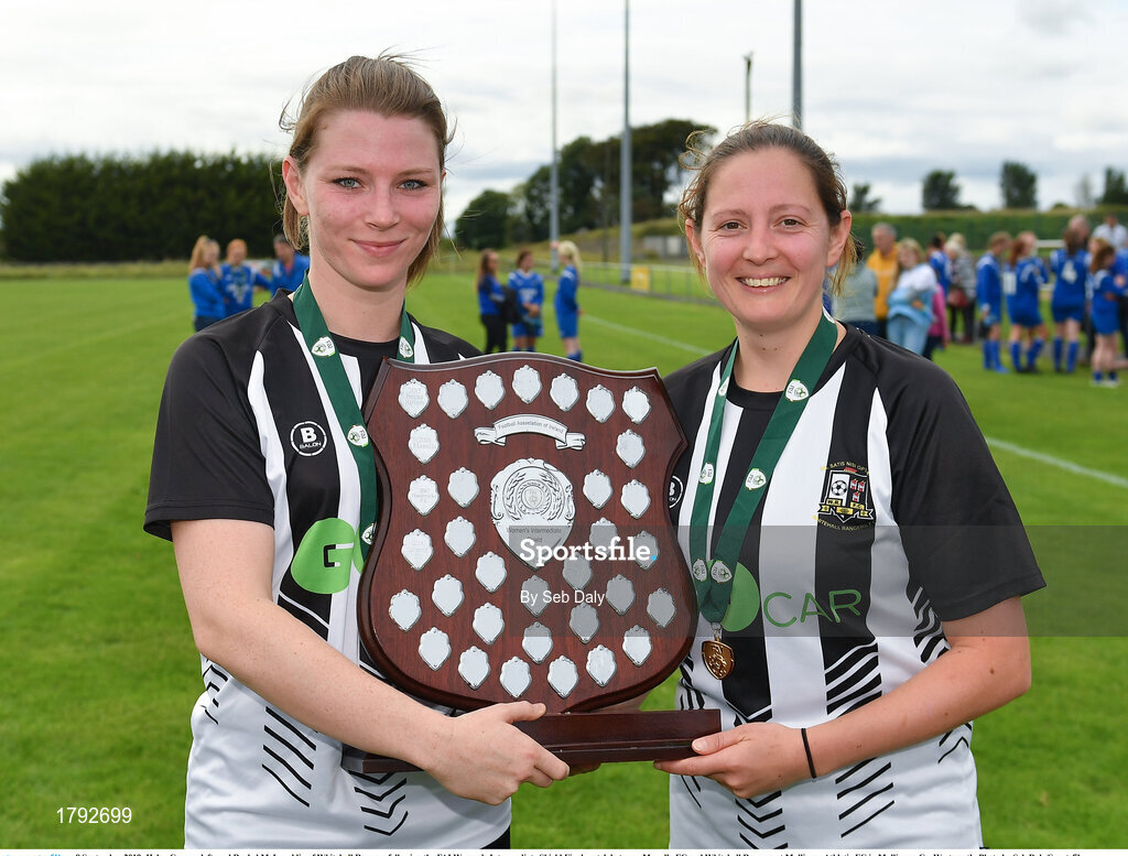 8 September 2019; Helen Cooney, left, and Rachel McLoughlin of Whitehall Rangers following the FAI Women’s Intermediate Shield Final match between Manulla FC and Whitehall Rangers at Mullingar Athletic FC in Mullingar, Co. Westmeath. Photo by Seb Daly/Sportsfile