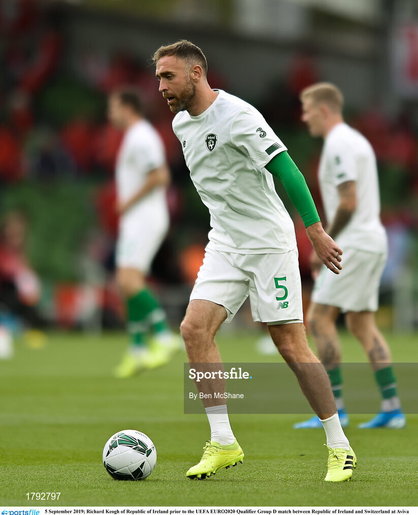 5 September 2019; Richard Keogh of Republic of Ireland prior to the UEFA EURO2020 Qualifier Group D match between Republic of Ireland and Switzerland at Aviva Stadium, Lansdowne Road in Dublin. Photo by Ben McShane/Sportsfile