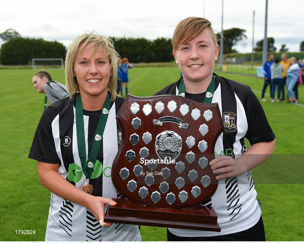 8 September 2019; Charlie Graham, left, and Tasha Graham of Whitehall Rangers following the FAI Women’s Intermediate Shield Final match between Manulla FC and Whitehall Rangers at Mullingar Athletic FC in Mullingar, Co. Westmeath. Photo by Seb Daly/Sportsfile