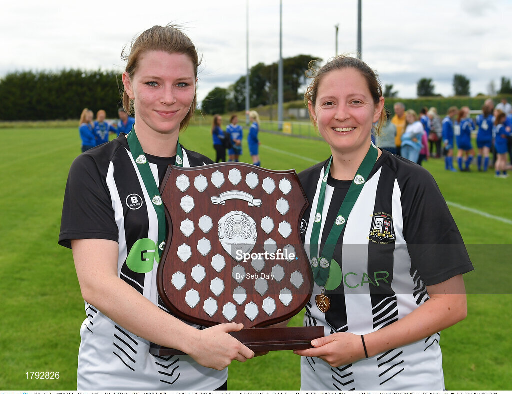 8 September 2019; Helen Cooney, left, and Rachel McLoughlin of Whitehall Rangers following the FAI Women’s Intermediate Shield Final match between Manulla FC and Whitehall Rangers at Mullingar Athletic FC in Mullingar, Co. Westmeath. Photo by Seb Daly/Sportsfile