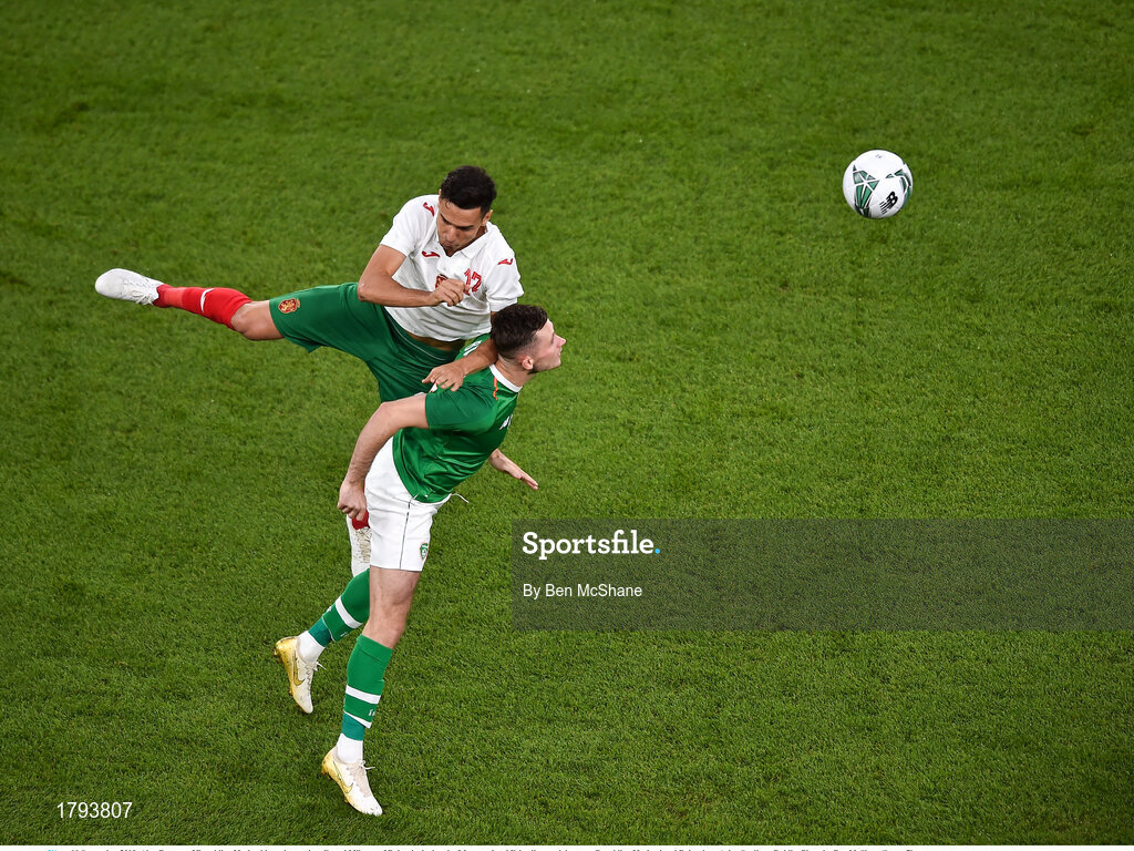10 September 2019; Alan Browne of Republic of Ireland in action against Georgi Milanov of Bulgaria during the 3 International Friendly match between Republic of Ireland and Bulgaria at Aviva Stadium, Dublin. Photo by Ben McShane/Sportsfile