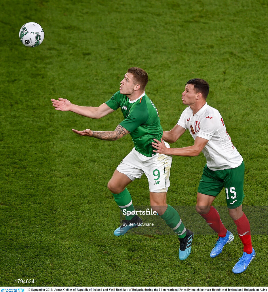 10 September 2019; James Collins of Republic of Ireland and Vasil Bozhikov of Bulgaria during the 3 International Friendly match between Republic of Ireland and Bulgaria at Aviva Stadium, Dublin. Photo by Ben McShane/Sportsfile