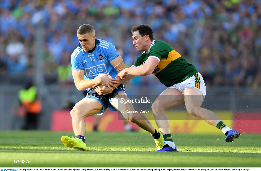 14 September 2019; Paul Mannion of Dublin in action against Tadhg Morley of Kerry during the GAA Football All-Ireland Senior Championship Final Replay match between Dublin and Kerry at Croke Park in Dublin. Photo by Ramsey Cardy/Sportsfile