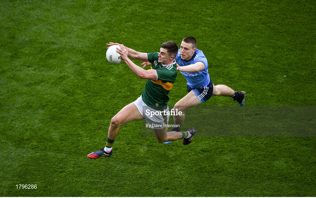 14 September 2019; Seán O'Shea of Kerry in action against John Small of Dublin during the GAA Football All-Ireland Senior Championship Final Replay match between Dublin and Kerry at Croke Park in Dublin. Photo by Daire Brennan/Sportsfile
