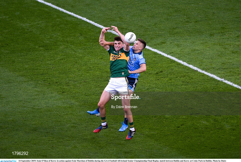 14 September 2019; Seán O'Shea of Kerry in action against Eoin Murchan of Dublin during the GAA Football All-Ireland Senior Championship Final Replay match between Dublin and Kerry at Croke Park in Dublin. Photo by Daire Brennan/Sportsfile