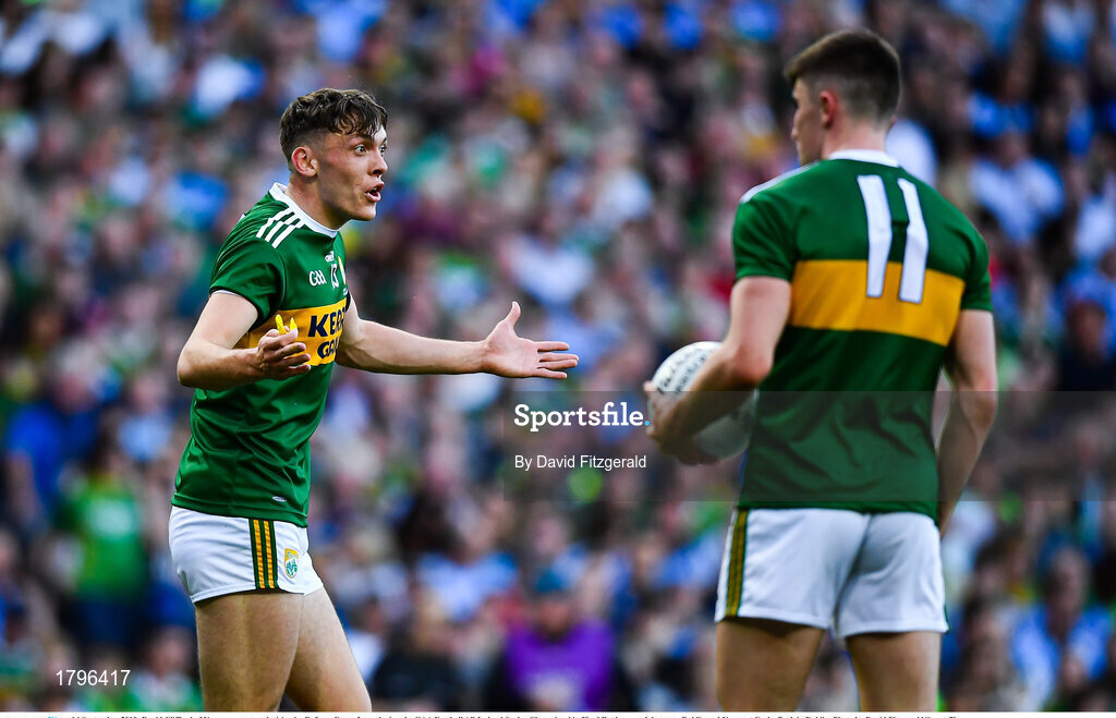 14 September 2019; David Clifford of Kerry reacts to a decision by Referee Conor Lane during the GAA Football All-Ireland Senior Championship Final Replay match between Dublin and Kerry at Croke Park in Dublin. Photo by David Fitzgerald/Sportsfile