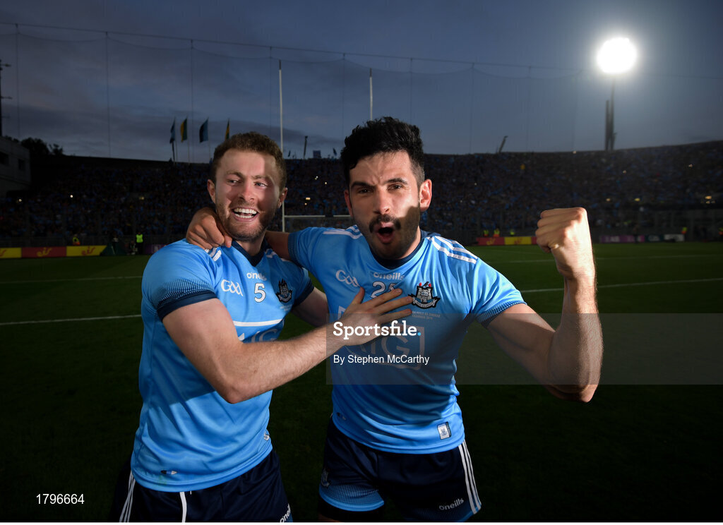 14 September 2019; Jack McCaffrey, left, and Cian O'Sullian of Dublin celebrate following the GAA Football All-Ireland Senior Championship Final Replay between Dublin and Kerry at Croke Park in Dublin. Photo by Stephen McCarthy/Sportsfile