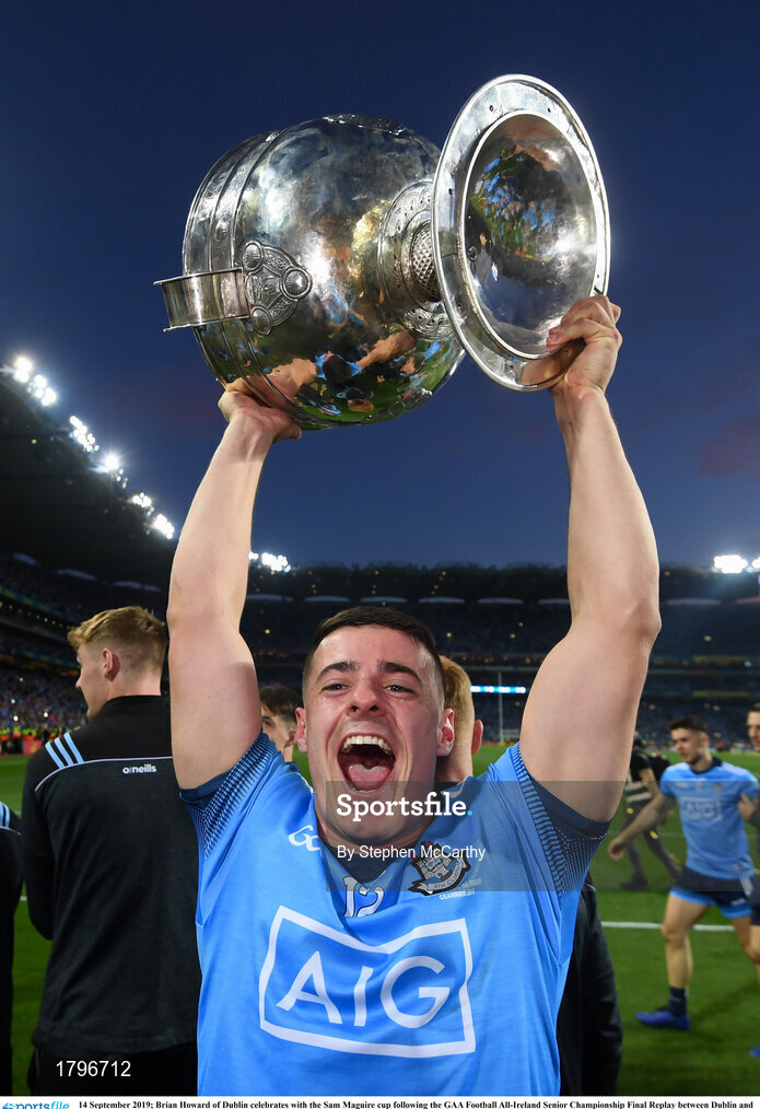 14 September 2019; Brian Howard of Dublin celebrates with the Sam Maguire cup following the GAA Football All-Ireland Senior Championship Final Replay between Dublin and Kerry at Croke Park in Dublin. Photo by Stephen McCarthy/Sportsfile