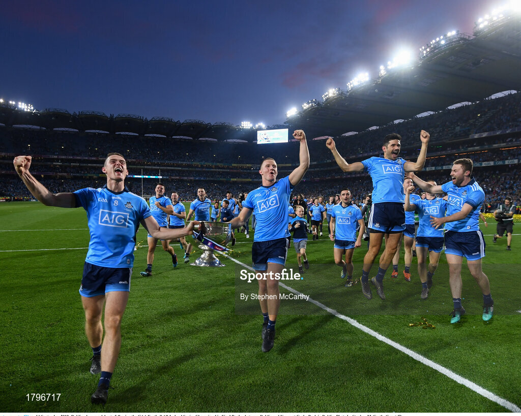 14 September 2019; Dublin players celebrate following the GAA Football All-Ireland Senior Championship Final Replay between Dublin and Kerry at Croke Park in Dublin. Photo by Stephen McCarthy/Sportsfile