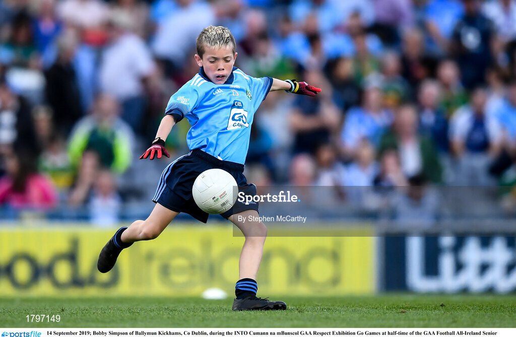 14 September 2019; Bobby Simpson of Ballymun Kickhams, Co Dublin, during the INTO Cumann na mBunscol GAA Respect Exhibition Go Games at half-time of the GAA Football All-Ireland Senior Championship Final Replay between Dublin and Kerry at Croke Park in Dublin. Photo by Stephen McCarthy/Sportsfile