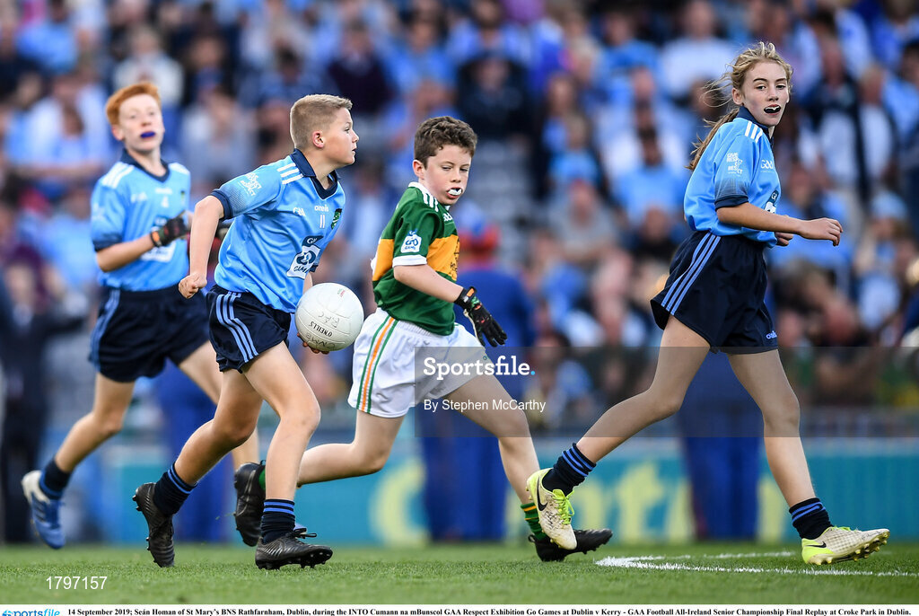 14 September 2019; Seán Homan of St Mary’s BNS Rathfarnham, Dublin, during the INTO Cumann na mBunscol GAA Respect Exhibition Go Games at Dublin v Kerry - GAA Football All-Ireland Senior Championship Final Replay at Croke Park in Dublin. Photo by Stephen McCarthy/Sportsfile