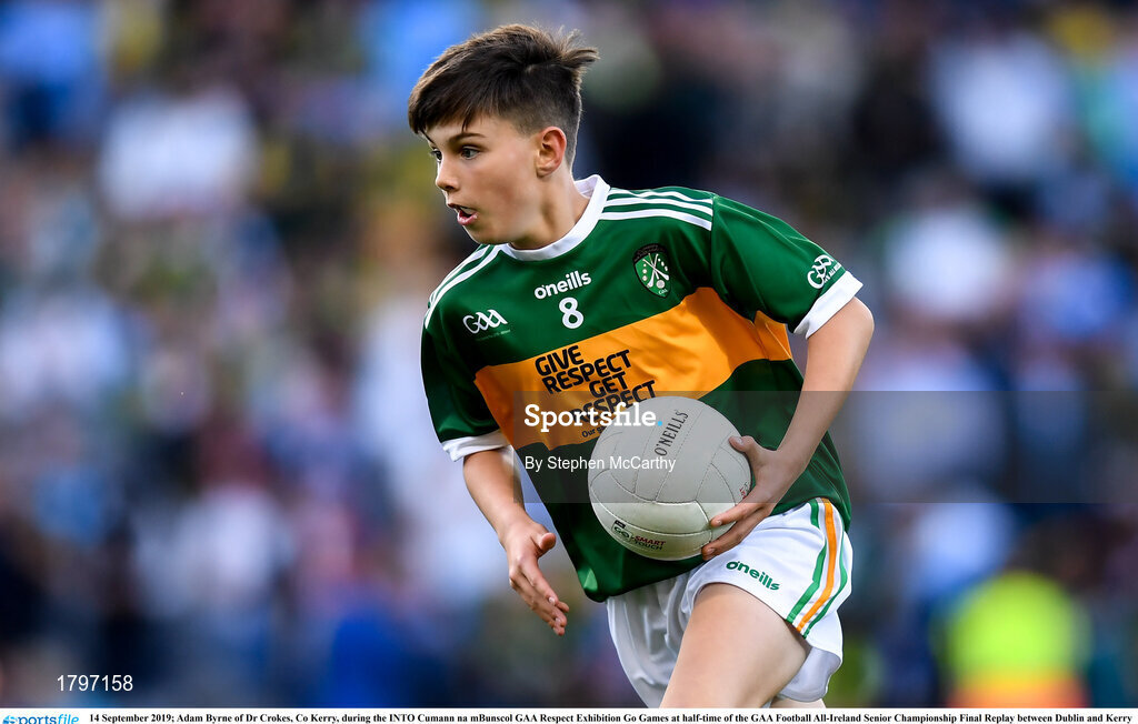 14 September 2019; Adam Byrne of Dr Crokes, Co Kerry, during the INTO Cumann na mBunscol GAA Respect Exhibition Go Games at half-time of the GAA Football All-Ireland Senior Championship Final Replay between Dublin and Kerry at Croke Park in Dublin. Photo by Stephen McCarthy/Sportsfile