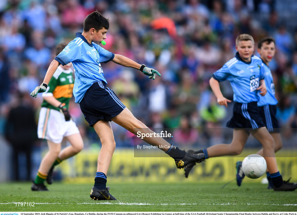 14 September 2019; Josh Higgins of St Patrick’s Gaa, Donabate, Co Dublin, during the INTO Cumann na mBunscol GAA Respect Exhibition Go Games at half-time of the GAA Football All-Ireland Senior Championship Final Replay between Dublin and Kerry at Croke Park in Dublin. Photo by Stephen McCarthy/Sportsfile