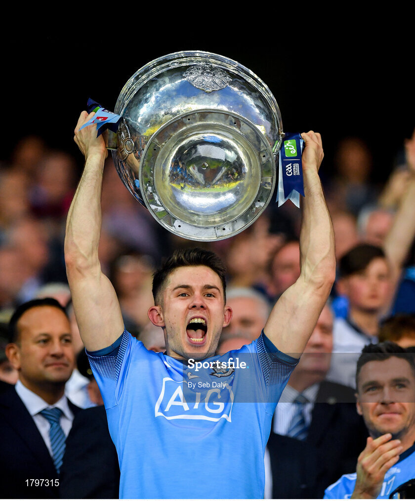14 September 2019; David Byrne of Dublin lifts the Sam Maguire Cup following the GAA Football All-Ireland Senior Championship Final Replay between Dublin and Kerry at Croke Park in Dublin. Photo by Seb Daly/Sportsfile