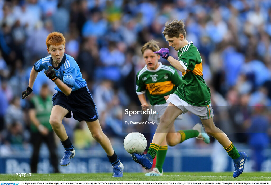 14 September 2019; Liam Hennigan of Dr Crokes, Co Kerry, during the INTO Cumann na mBunscol GAA Respect Exhibition Go Games at Dublin v Kerry - GAA Football All-Ireland Senior Championship Final Replay at Croke Park in Dublin. Photo by Ramsey Cardy/Sportsfile