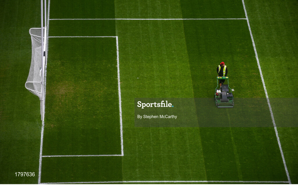 15 September 2019; The pitch is prepared prior to the TG4 All-Ireland Ladies Football Senior Championship Final match between Dublin and Galway at Croke Park in Dublin. Photo by Stephen McCarthy/Sportsfile