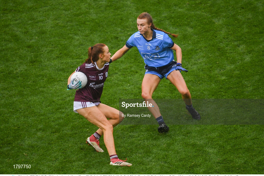 15 September 2019; Olivia Divilly of Galway in action against Lauren Magee of Dublin during the TG4 All-Ireland Ladies Football Senior Championship Final match between Dublin and Galway at Croke Park in Dublin. Photo by Ramsey Cardy/Sportsfile