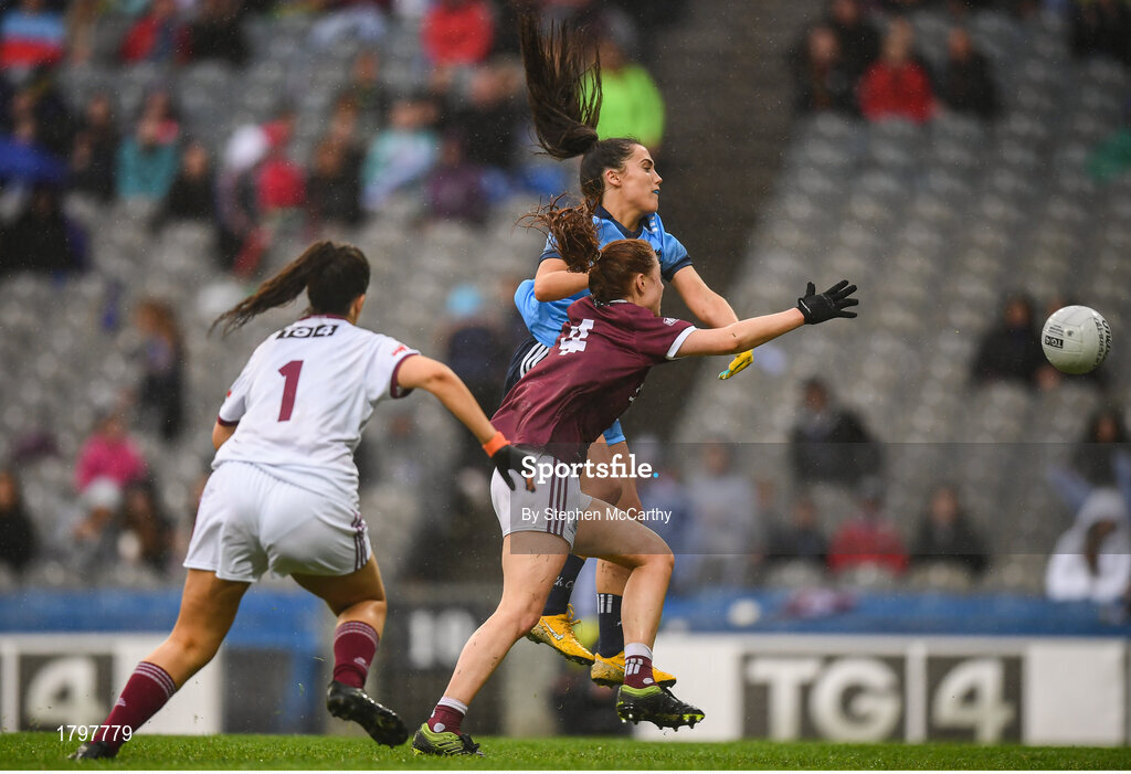 15 September 2019; Hannah O'Neill of Dublin scores her side's second goal during the TG4 All-Ireland Ladies Football Senior Championship Final match between Dublin and Galway at Croke Park in Dublin. Photo by Stephen McCarthy/Sportsfile