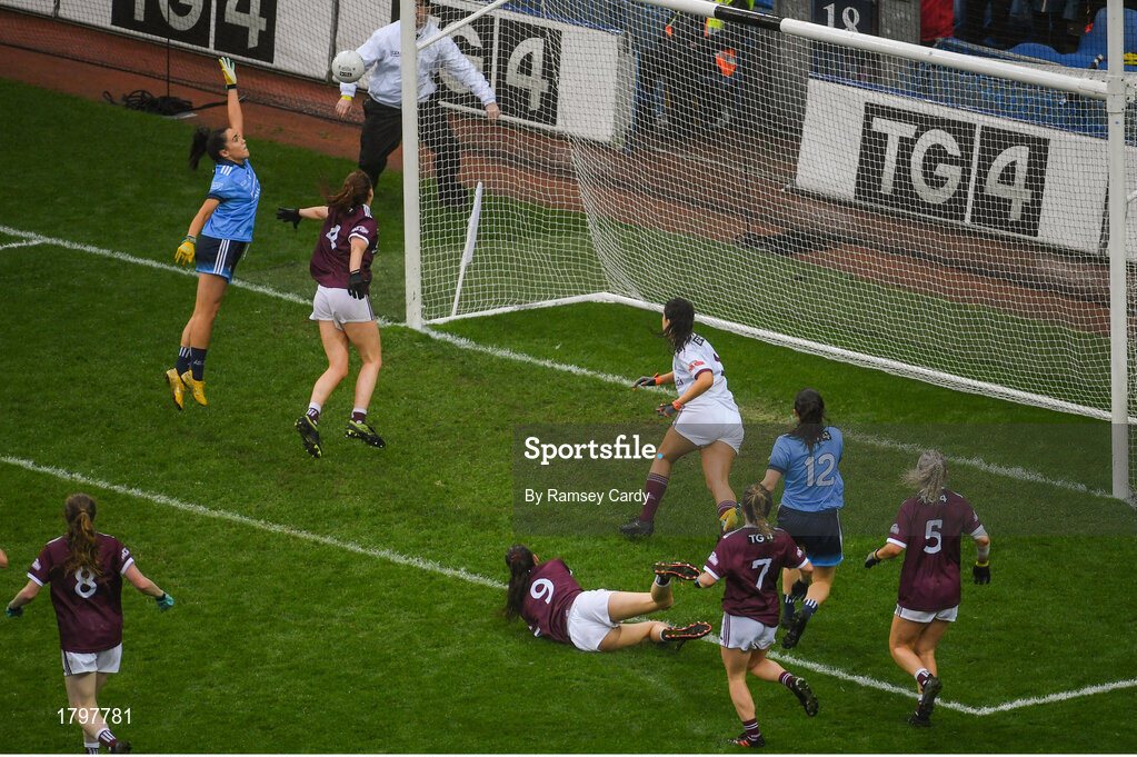 15 September 2019; Hannah O'Neill of Dublin scores her side's second goal during the TG4 All-Ireland Ladies Football Senior Championship Final match between Dublin and Galway at Croke Park in Dublin. Photo by Ramsey Cardy/Sportsfile