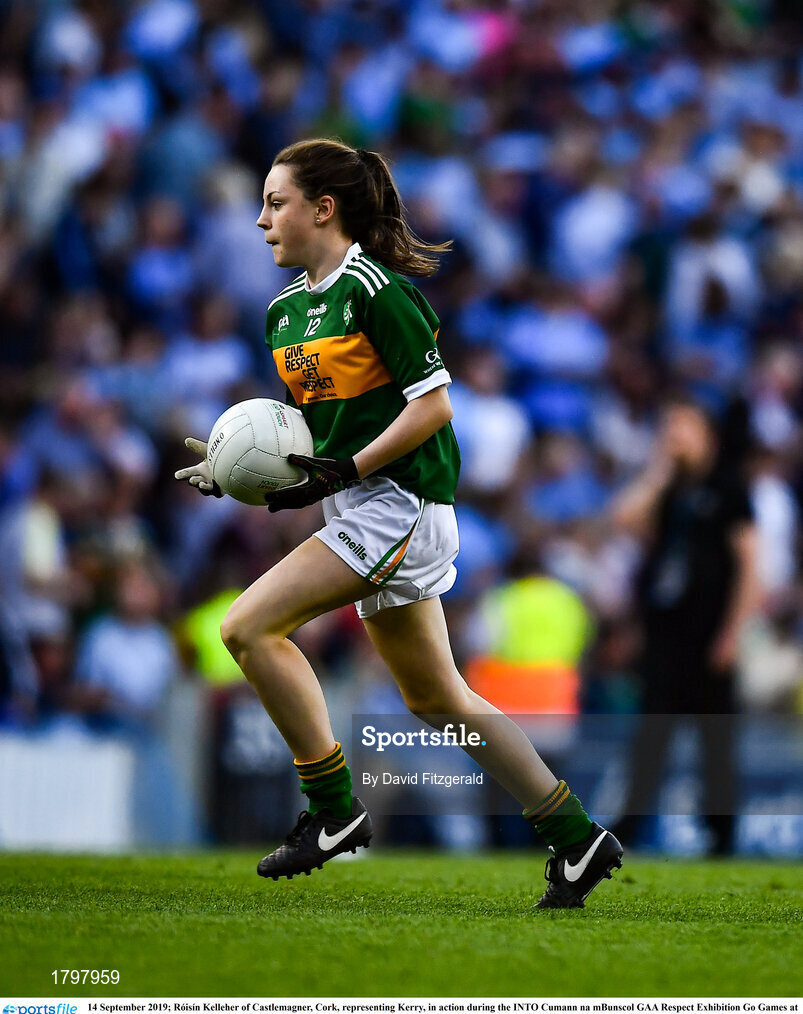14 September 2019; Róisín Kelleher of Castlemagner, Cork, representing Kerry, in action during the INTO Cumann na mBunscol GAA Respect Exhibition Go Games at Dublin v Kerry - GAA Football All-Ireland Senior Championship Final Replay at Croke Park in Dublin. Photo by David Fitzgerald/Sportsfile