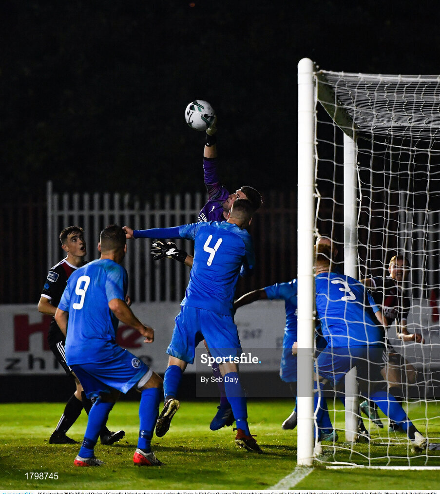 16 September 2019; Michael Quinn of Crumlin United makes a save during the Extra.ie FAI Cup Quarter-Final match between Crumlin United and Bohemians at Richmond Park in Dublin. Photo by Seb Daly/Sportsfile