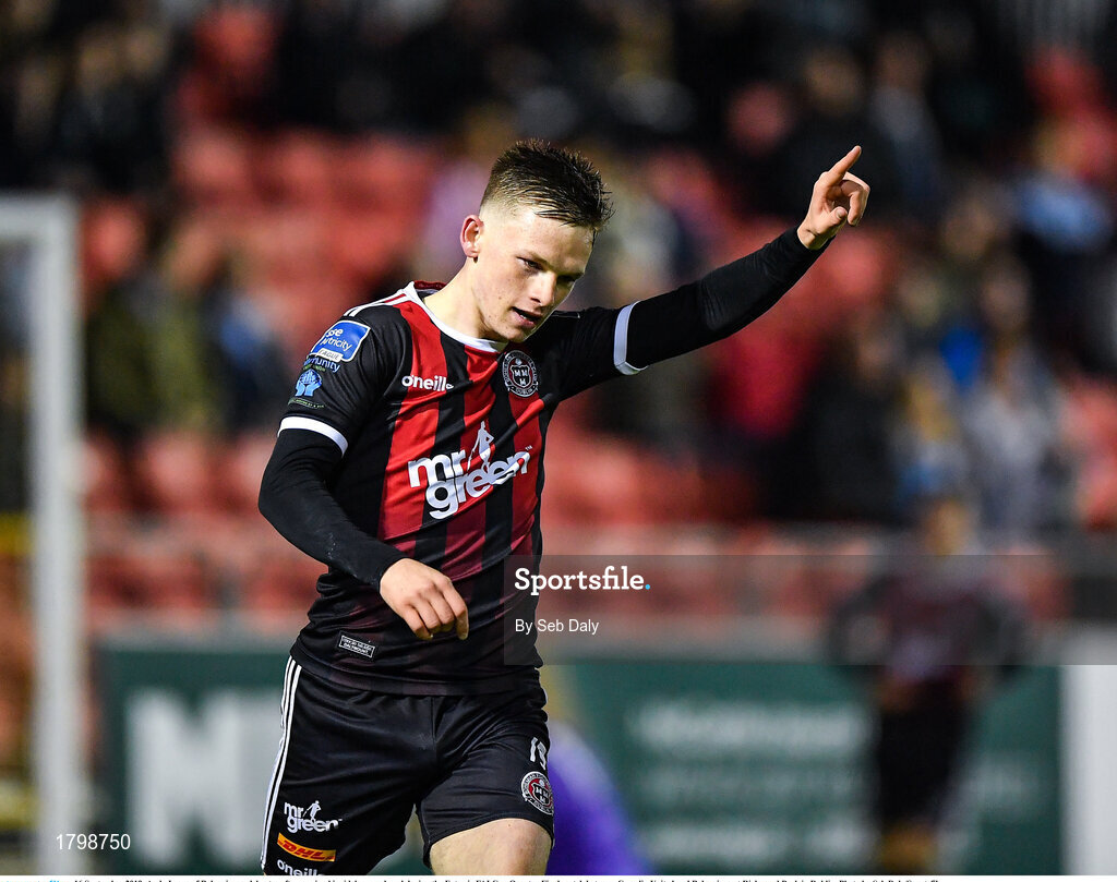 16 September 2019; Andy Lyons of Bohemians celebrates after scoring his side's second goal during the Extra.ie FAI Cup Quarter-Final match between Crumlin United and Bohemians at Richmond Park in Dublin. Photo by Seb Daly/Sportsfile
