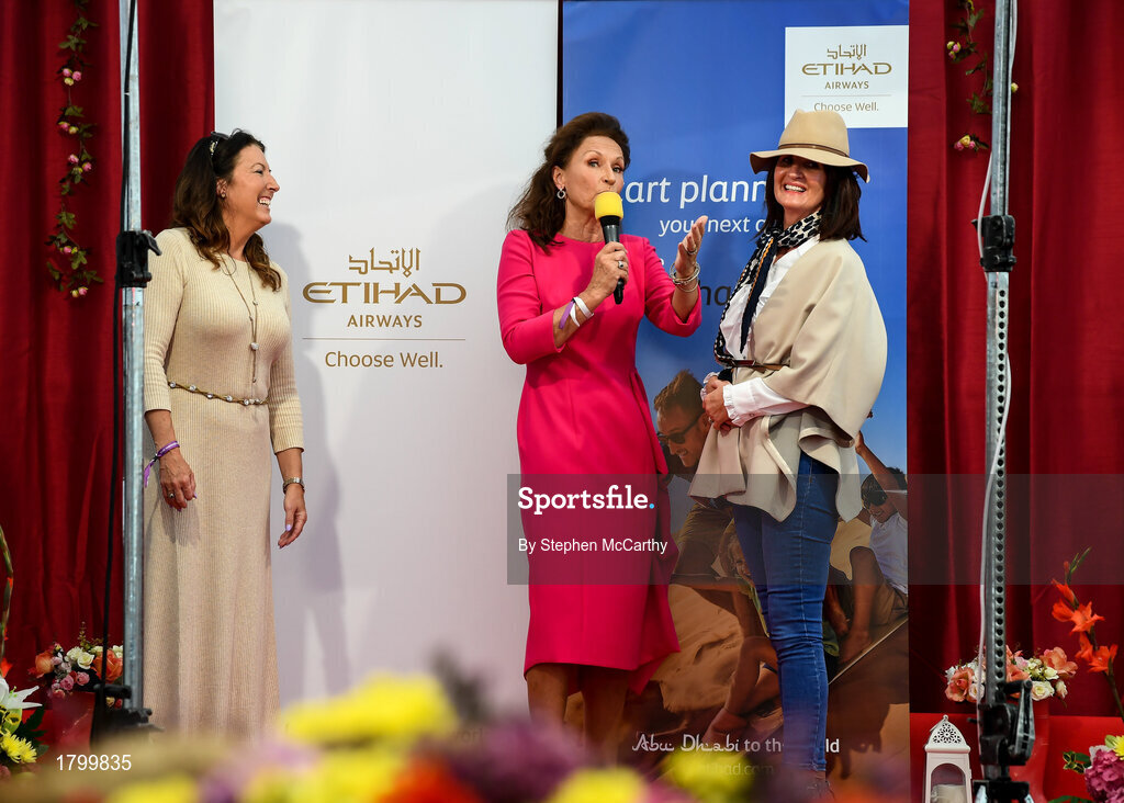 18 September 2019; Celia Holman Lee with Gráinne Anderson, from Naas, Kildare, during the Etihad Airways’ ‘Best Dressed Country Style’ competition at the National Ploughing Championship in Ballintrane, Fenagh, Co. Carlow. This year’s prize includes two return economy flights from Dublin to Abu Dhabi, a two-night stay in the luxury Yas Hotel built over the F1 Grand Prix race track, a two-night stay in the prominent 5-Star Fairmont Bab Al Bahr and two complimentary 3-park passes for Yas Island. Photo by Stephen McCarthy/Sportsfile