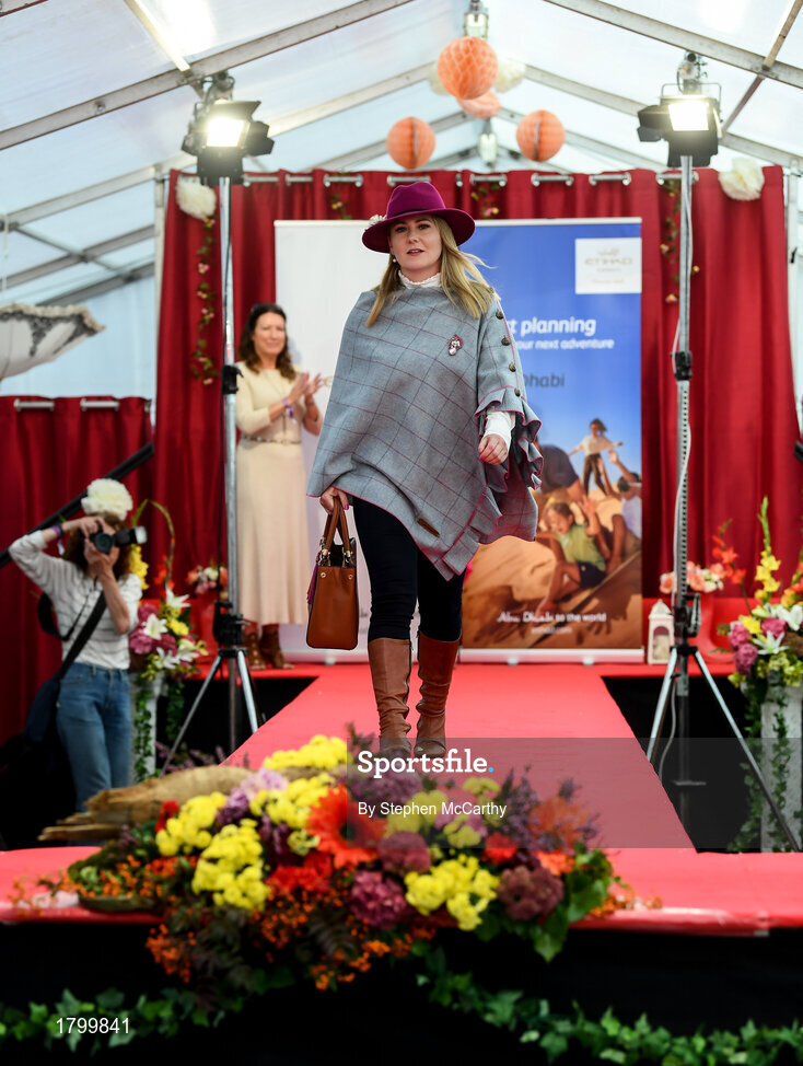 18 September 2019; Andrea Murphy, from Kilkenny, during the Etihad Airways’ ‘Best Dressed Country Style’ competition at the National Ploughing Championship in Ballintrane, Fenagh, Co. Carlow. This year’s prize includes two return economy flights from Dublin to Abu Dhabi, a two-night stay in the luxury Yas Hotel built over the F1 Grand Prix race track, a two-night stay in the prominent 5-Star Fairmont Bab Al Bahr and two complimentary 3-park passes for Yas Island. Photo by Stephen McCarthy/Sportsfile