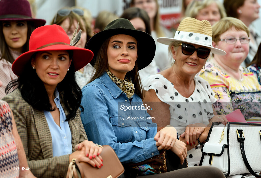 18 September 2019; Attendees, from left, Elaine Murphy, Catherine Furlong and Liz Farrell during the Etihad Airways’ ‘Best Dressed Country Style’ competition at the National Ploughing Championship in Ballintrane, Fenagh, Co. Carlow. This year’s prize includes two return economy flights from Dublin to Abu Dhabi, a two-night stay in the luxury Yas Hotel built over the F1 Grand Prix race track, a two-night stay in the prominent 5-Star Fairmont Bab Al Bahr and two complimentary 3-park passes for Yas Island. Photo by Stephen McCarthy/Sportsfile