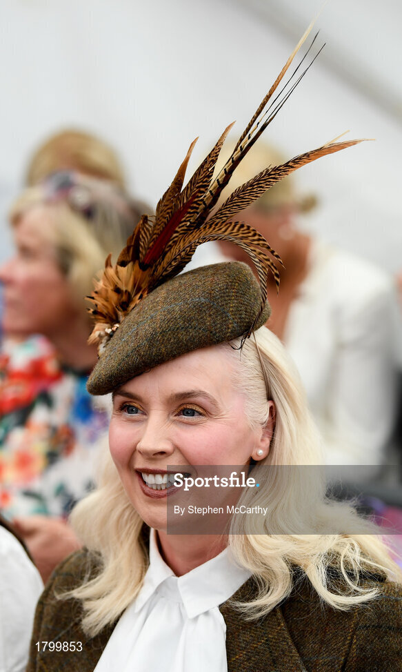 18 September 2019; Gillian Kelleher, from Millstreet, Cork, during the Etihad Airways’ ‘Best Dressed Country Style’ competition at the National Ploughing Championship in Ballintrane, Fenagh, Co. Carlow. This year’s prize includes two return economy flights from Dublin to Abu Dhabi, a two-night stay in the luxury Yas Hotel built over the F1 Grand Prix race track, a two-night stay in the prominent 5-Star Fairmont Bab Al Bahr and two complimentary 3-park passes for Yas Island. Photo by Stephen McCarthy/Sportsfile
