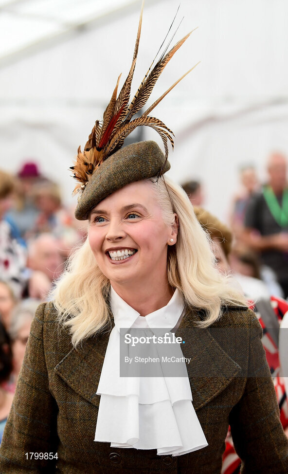 18 September 2019; Gillian Kelleher, from Millstreet, Cork, during the Etihad Airways’ ‘Best Dressed Country Style’ competition at the National Ploughing Championship in Ballintrane, Fenagh, Co. Carlow. This year’s prize includes two return economy flights from Dublin to Abu Dhabi, a two-night stay in the luxury Yas Hotel built over the F1 Grand Prix race track, a two-night stay in the prominent 5-Star Fairmont Bab Al Bahr and two complimentary 3-park passes for Yas Island. Photo by Stephen McCarthy/Sportsfile