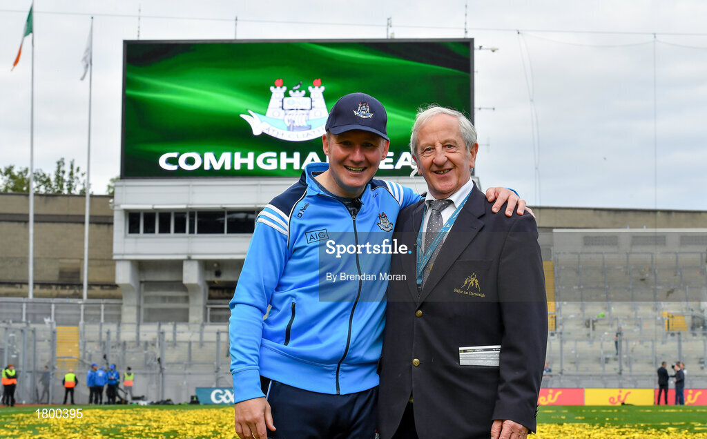 17 September 2017; Dublin manager Jim Gavin and Mick Leddy following the GAA Football All-Ireland Senior Championship Final match between Dublin and Mayo at Croke Park in Dublin. Photo by Brendan Moran/Sportsfile
