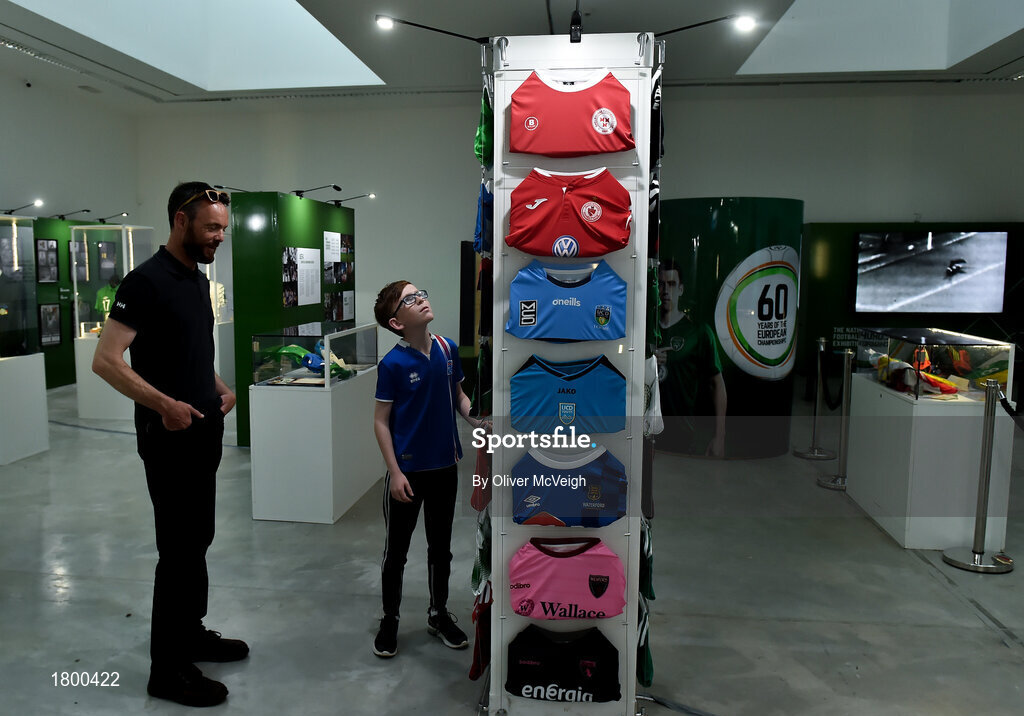 19 September 2019; John O'Donnell and son Sam, from Letterkenny, at the National Football Exhibition launch in the Regional Cultural Centre, Letterkenny, Donegal. Photo by Oliver McVeigh/Sportsfile