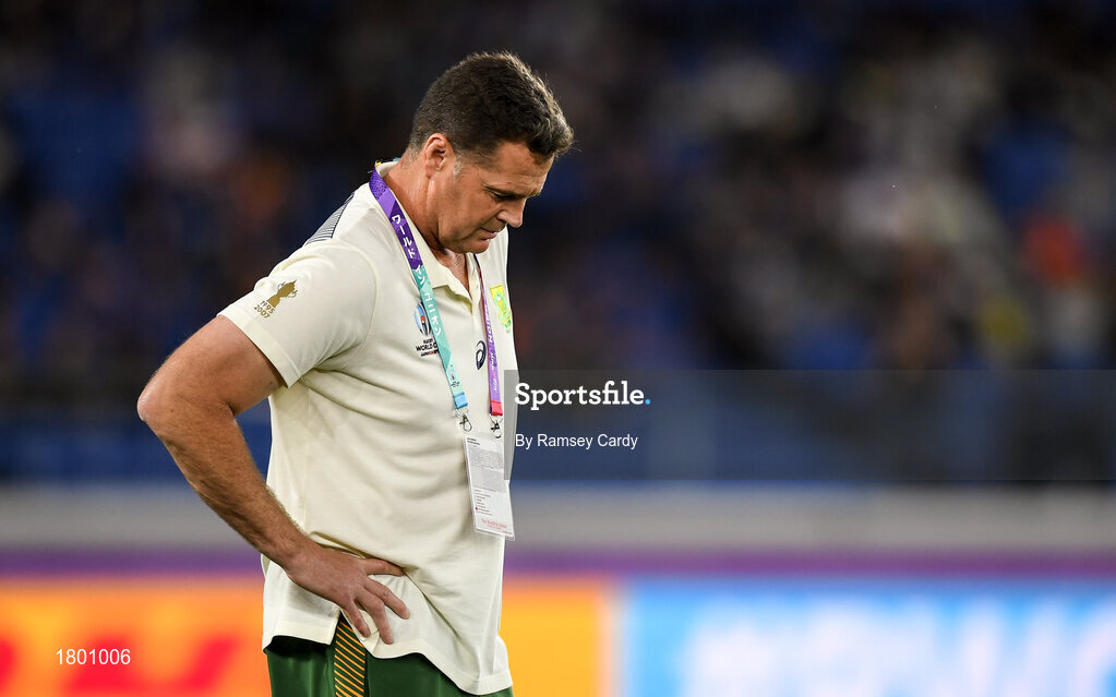 21 September 2019; South Africa head coach Rassie Erasmus ahead of the 2019 Rugby World Cup Pool B match between New Zealand and South Africa at the International Stadium in Yokohama, Japan. Photo by Ramsey Cardy/Sportsfile