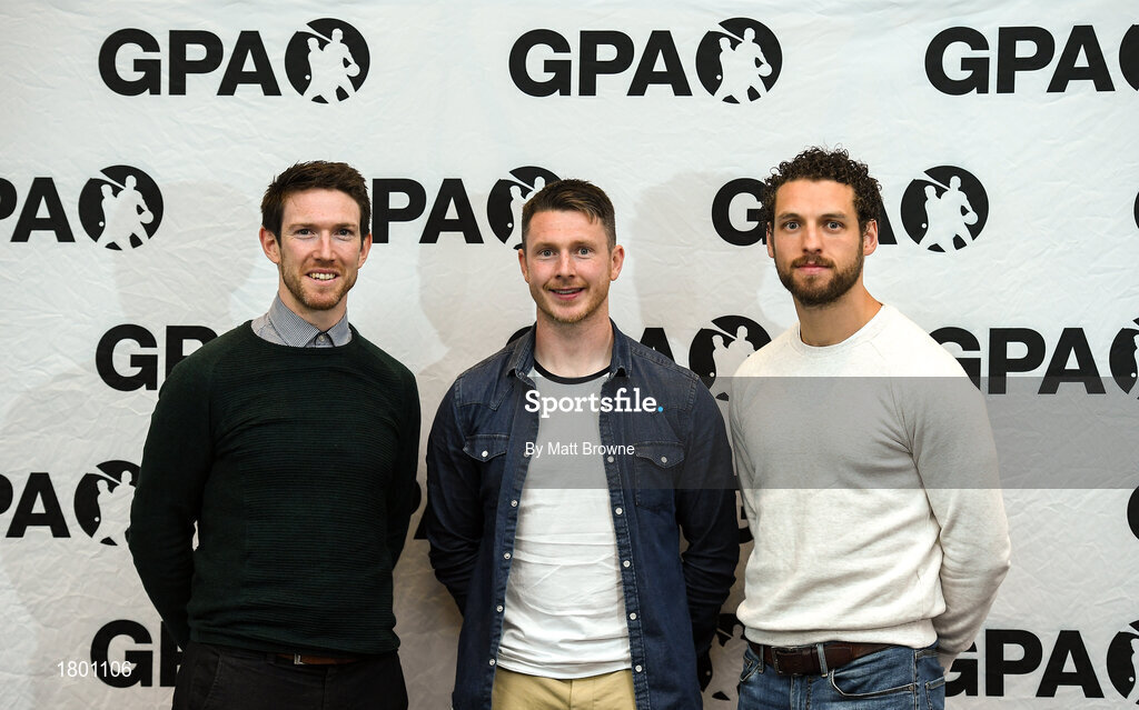 21 September 2019; Longford football Mickey Quinn who joined the GPA National Executive committee with GPA Chairman Seamus Hickey and GPA Secretary Tom Parsons during the 2019 GPA AGM & Reps Day at Dunboyne Castle Hotel in Meath. Photo by Matt Browne/Sportsfile