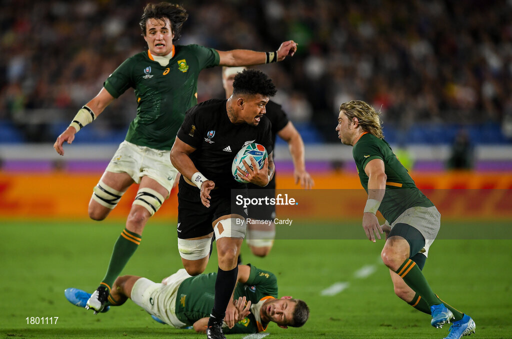 21 September 2019; Ardie Savea of New Zealand makes a break during the 2019 Rugby World Cup Pool B match between New Zealand and South Africa at the International Stadium in Yokohama, Japan. Photo by Ramsey Cardy/Sportsfile