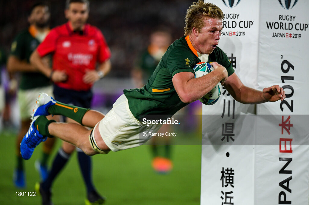 21 September 2019; Pieter-Steph du Toit of South Africa scores his side's first try during the 2019 Rugby World Cup Pool B match between New Zealand and South Africa at the International Stadium in Yokohama, Japan. Photo by Ramsey Cardy/Sportsfile