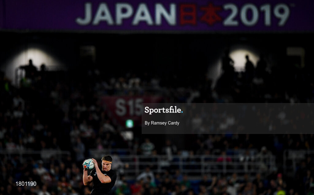 21 September 2019; Scott Barrett of New Zealand wins possession of the line-out during the 2019 Rugby World Cup Pool B match between New Zealand and South Africa at the International Stadium in Yokohama, Japan. Photo by Ramsey Cardy/Sportsfile